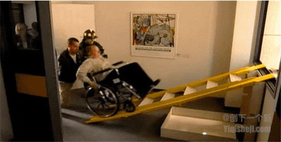 電梯到達特定樓層后,將電梯門口與逃生口對接,人員就能盡快地趕上電梯逃生,即使是輪椅可以推進電梯里。