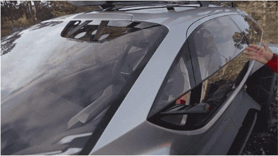 前擋風(fēng)玻璃可以開啟,里面有足夠空間存放物品。車門采用并列對(duì)開設(shè)計(jì),開門方式也充滿科技感,通過手機(jī)感應(yīng)開門。