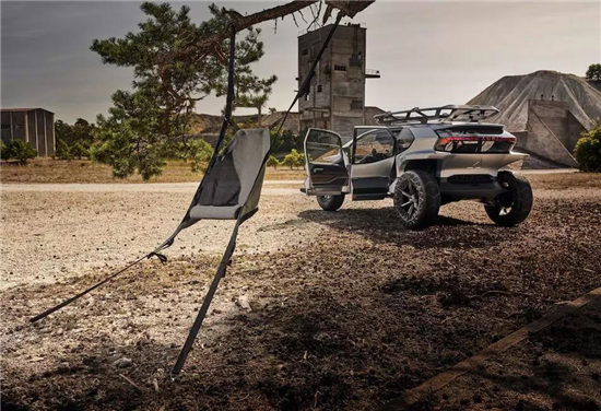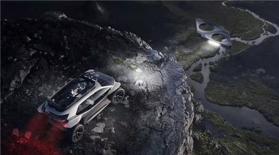 此概念車是一款越野電動(dòng)車,與普通越野車最大的區(qū)別就是只有前后的白天行車燈,取消了車頭大燈,用了5架無人機(jī)取代了車頭大燈,奧迪稱之為“奧迪輕型探路者”,不使用時(shí)就停留在車頂待命。