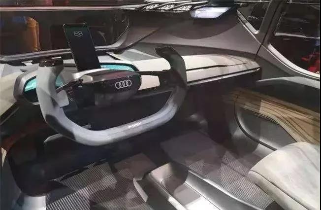 方向盤上方有一個(gè)放手機(jī)的槽,將手機(jī)放進(jìn)去就變成一個(gè)數(shù)碼表盤;左邊屏幕為導(dǎo)航儀,右邊屏幕則顯示電池余量。方向盤左邊為啟動(dòng)按鈕,右邊三個(gè)按鈕分別是前進(jìn)檔,空檔和倒檔。 同樣,后視鏡也是用攝像頭代替了。