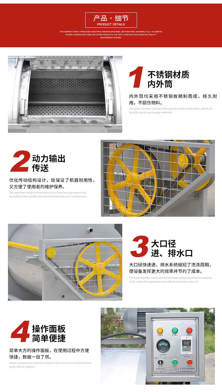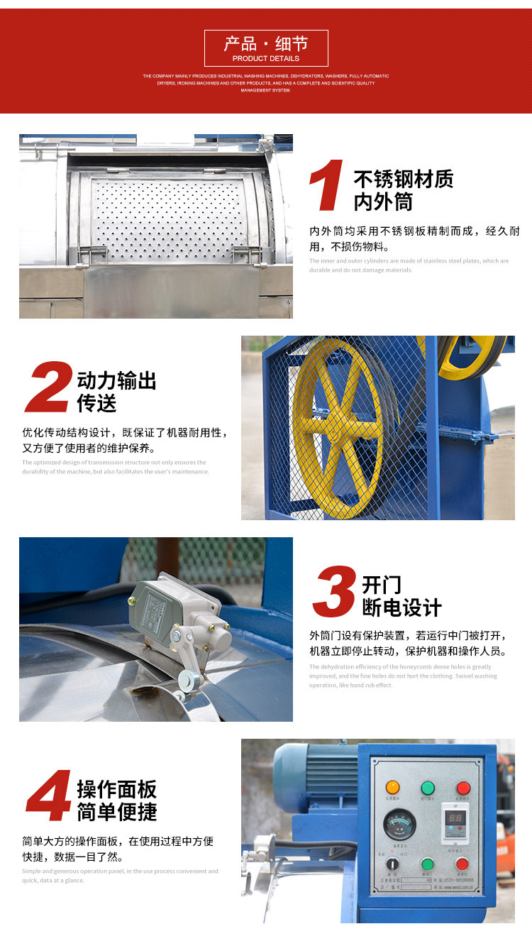 我公司專(zhuān)注于工業(yè)洗衣機(jī),脫水機(jī),水洗機(jī)等洗滌設(shè)備的生產(chǎn),同時(shí)我司為特殊用戶(hù)訂制非標(biāo)洗滌機(jī)械。熱忱歡迎廣大客戶(hù)來(lái)電咨詢(xún)產(chǎn)品信息。