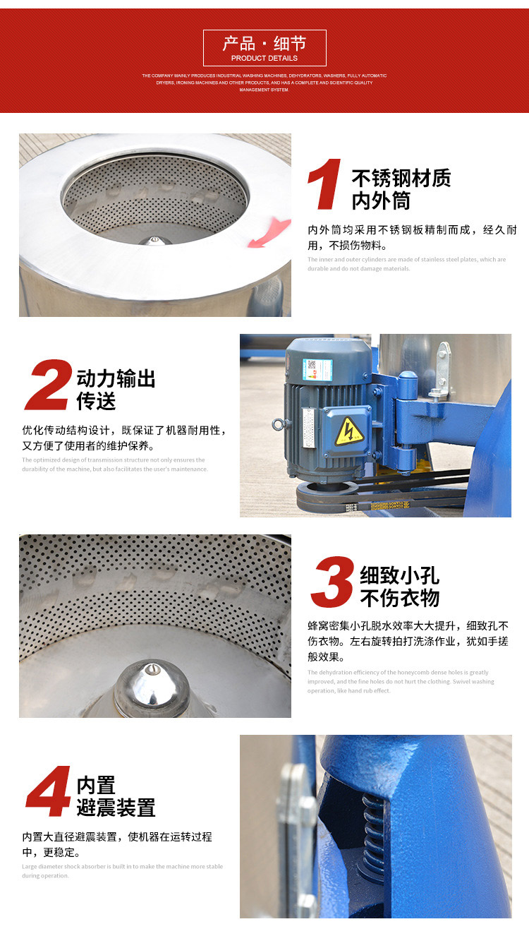 我公司專(zhuān)注于工業(yè)洗衣機(jī),脫水機(jī),水洗機(jī)等洗滌設(shè)備的生產(chǎn),同時(shí)我司為特殊用戶訂制非標(biāo)洗滌機(jī)械。熱忱歡迎廣大客戶來(lái)電咨詢產(chǎn)品信息。