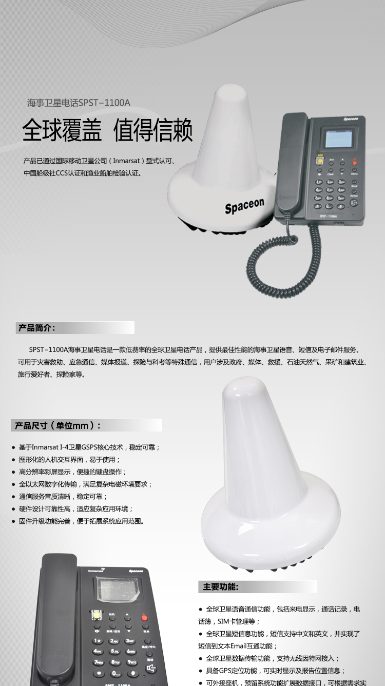 SPST-1100A海事衛(wèi)星電話基于Inmarsat衛(wèi)星系統(tǒng)為用戶提供性能極佳的語音、短信及電子郵件功能,適用于漁業(yè)通信、邊遠地區(qū)通信等領域。